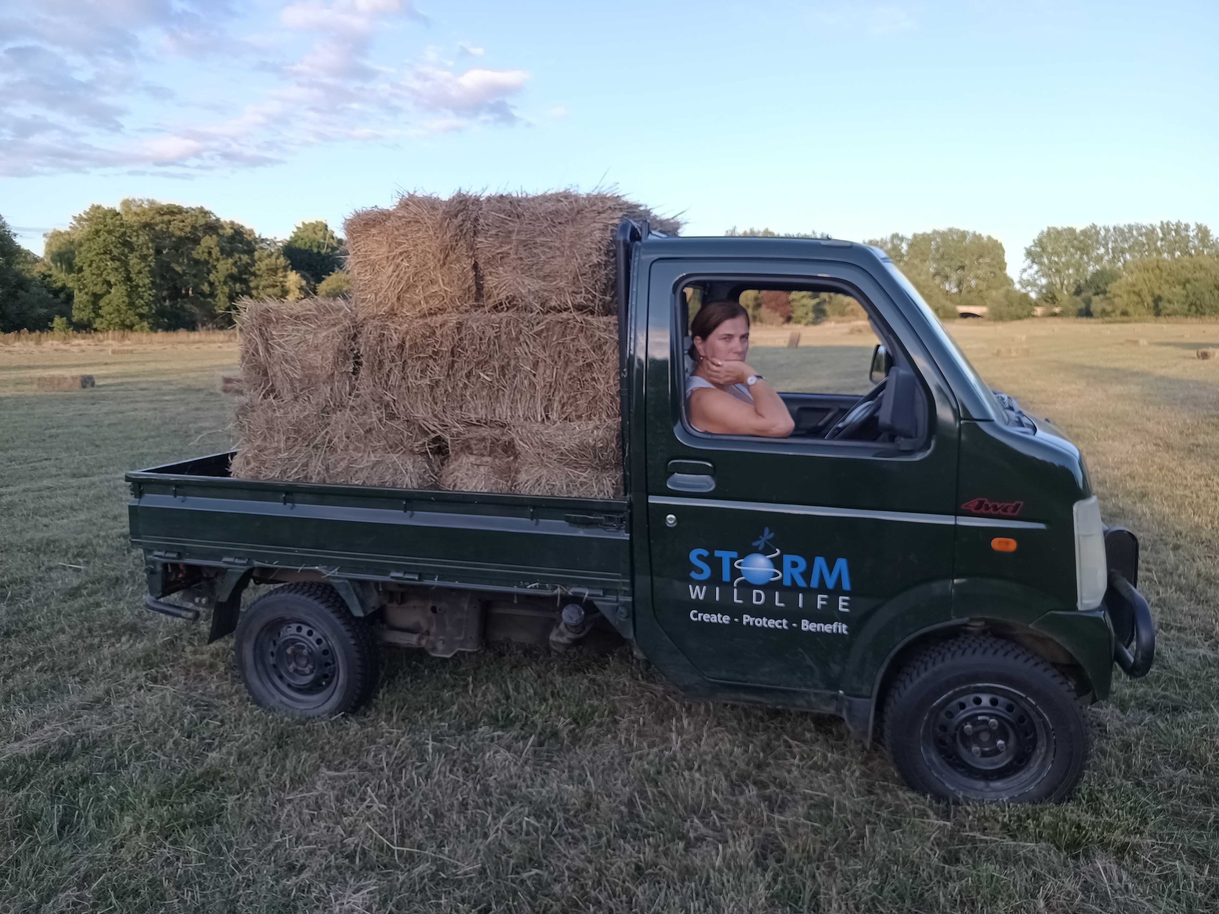 Despite the rain in August we found a small weather window of four dry days to make hay. Thanks to Anthony Spencer for making the hay and Richard Spencer for helping to load it. We went for round bales this year as we are storing them outside under tarpaulin and they shed water better than square bales. We were slightly down on the yield of hay compared to last year but that is expected as we are not putting any nutrients into the soil in preparation for sowing the wildflower seed mix in the Autumn.